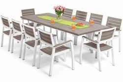 Ulepszenie ogrodu nigdy nie było łatwiejsze. Wykwintny zestaw mebli stworzony dla 10 osób to idealny wybór dla tych, którzy pragną połączyć funkcjonalność, wdzięk i nowoczesność.