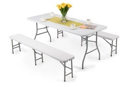 Zestaw mebli składany biały catering stół 180 cm i 2 ławki