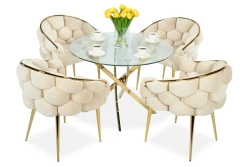 Zestaw stól i krzesła glamour RAYMOND + BALLOON 4-osobowy - beżowo-złoty