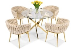 Zestaw stól i krzesła glamour RAYMOND + ROSA 4-osobowy - beżowo-złoty