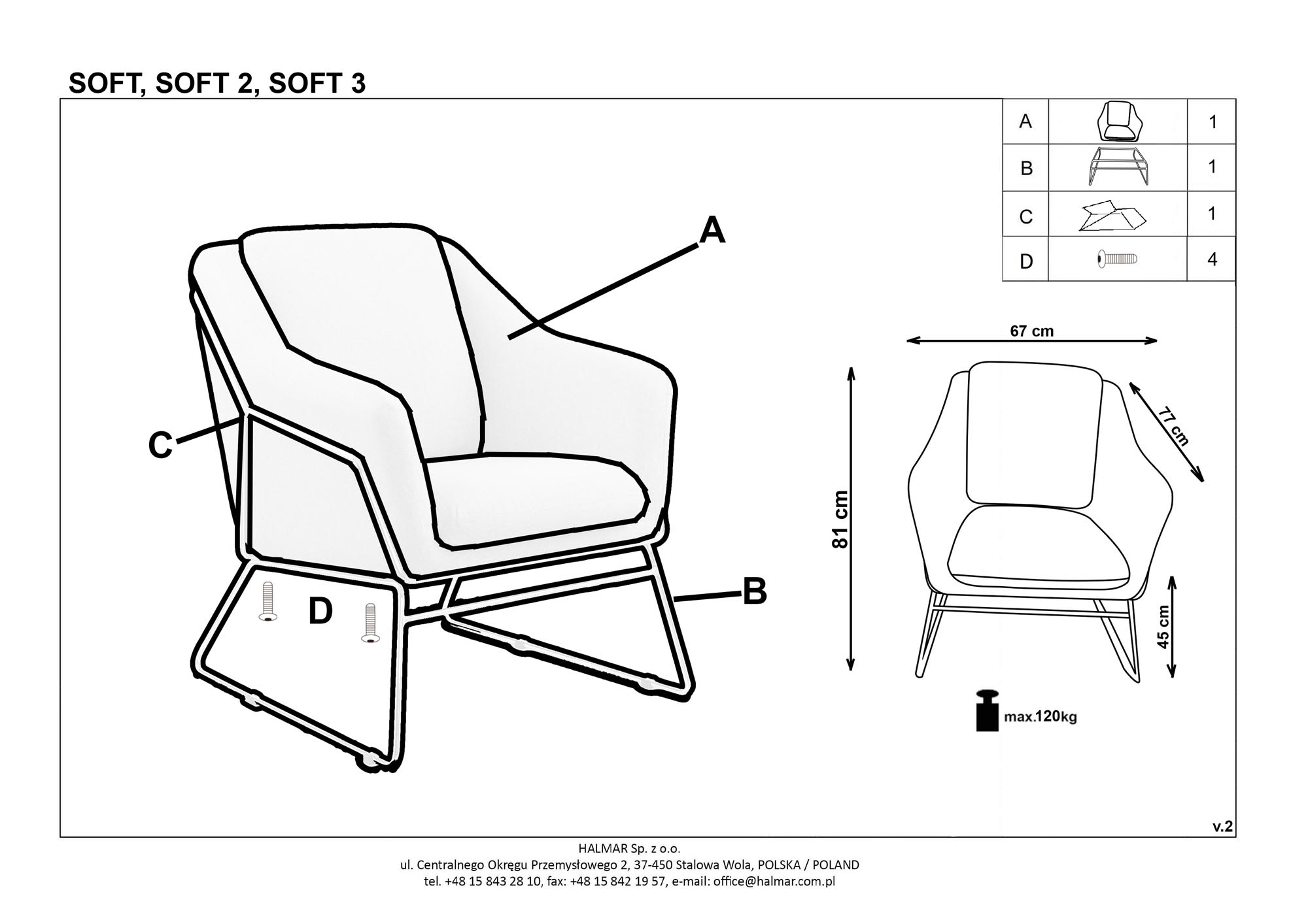 Charakterystycznym znakiem rozpoznawczym i niewątpliwym atutem fotela SOFT jest wytrzymały stelaż nóg i siedziska wykonany ze stali chromowanej w złotym kolorze. Chromowany stelaż nie tylko utrzymuje siedzisko, ale też podpiera plecy fotela. Przez takie rozwiązanie fotel SOFT jest niezwykle komfortowy i wygodny. Przemyślany projekt i niezwykłe wykonanie fotela SOFT w połączeniu z uniwersalną kolorystyką sprawia, że jest to mebel bardzo chętnie wybierany zarówno do pomieszczeń domowych jak i publicznych. Sprawdza się w aranżacjach loftowych, nowoczesnych, klasycznych i glamour. Zachwyca formą, wykonaniem i piękną kolorystyką.