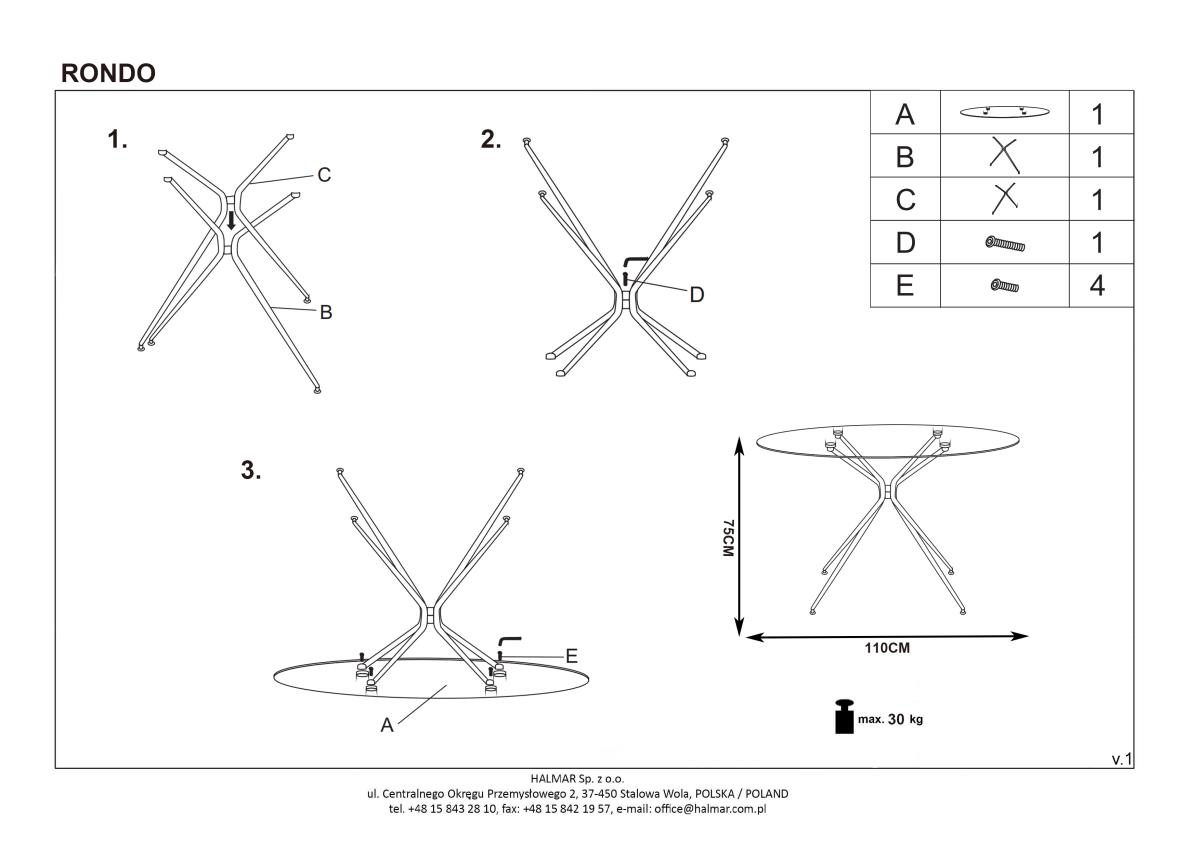 Stabilne nogi utrzymują blat w 4 skrajnych miejscach zapewniając stabilne i komfortowe użytkowanie. Chromowana stal w kolorze złotym jest rozłożona równomiernie po całej powierzchni. Ozdobne zakończenia smukłych nóg stanowią piękne dopełnienie aranżacji.