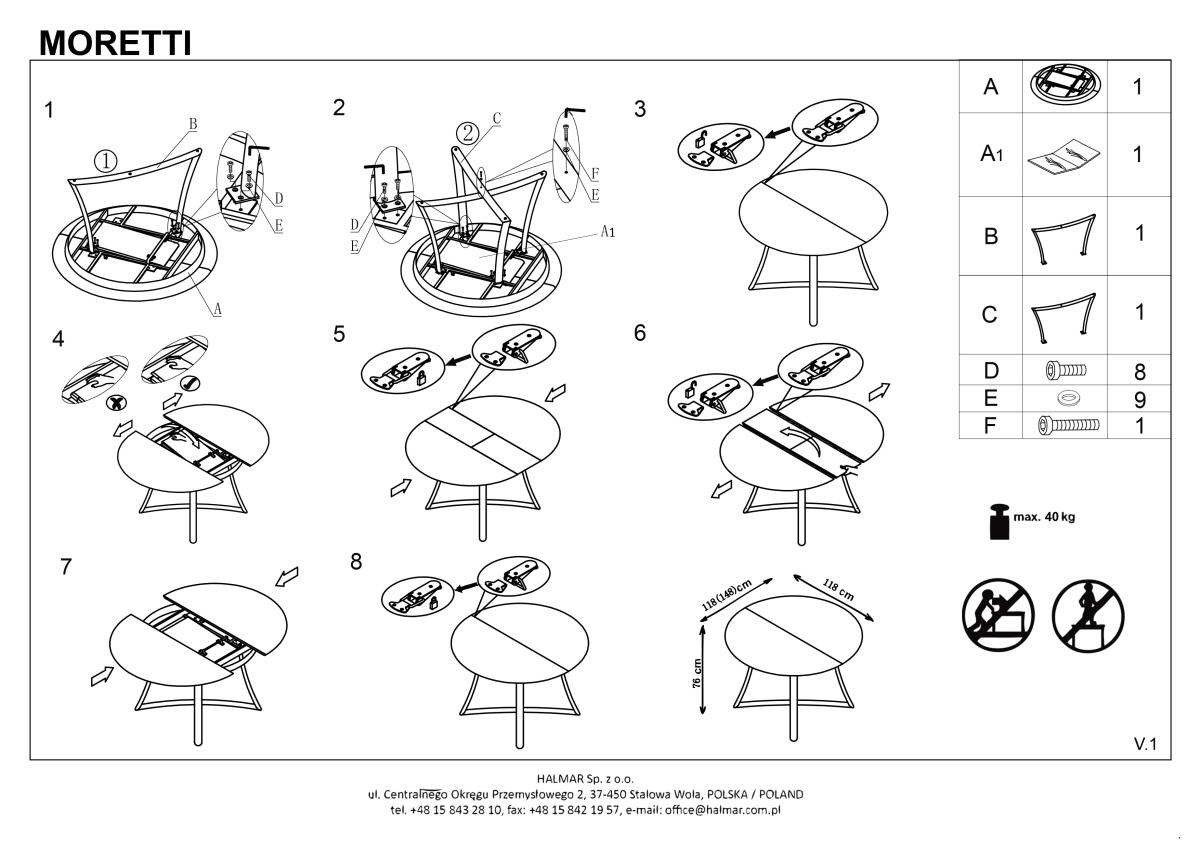Czarne nogi wykonane ze stali zostały pomalowane precyzyjną metodą proszkową. Kolejnym atutem stołu Moretti to stabilna podstawa na planie krzyża, która zapewnia wysoki komfort użytkowania.