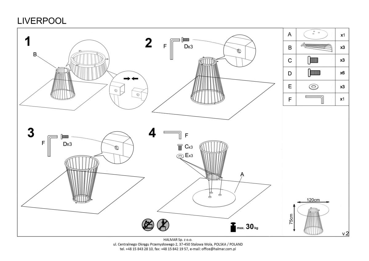 Ozdobna noga w kolorze złotym przyciąga uwagę i zapewnia stabilne podparcie dla dużego blatu o średnicy 120 cm. Stół Liverpool jest wykonany z niezwykłą starannością dlatego jest produktem wysokiej jakości i spełni oczekiwania wielbicieli klasycznych mebli.
