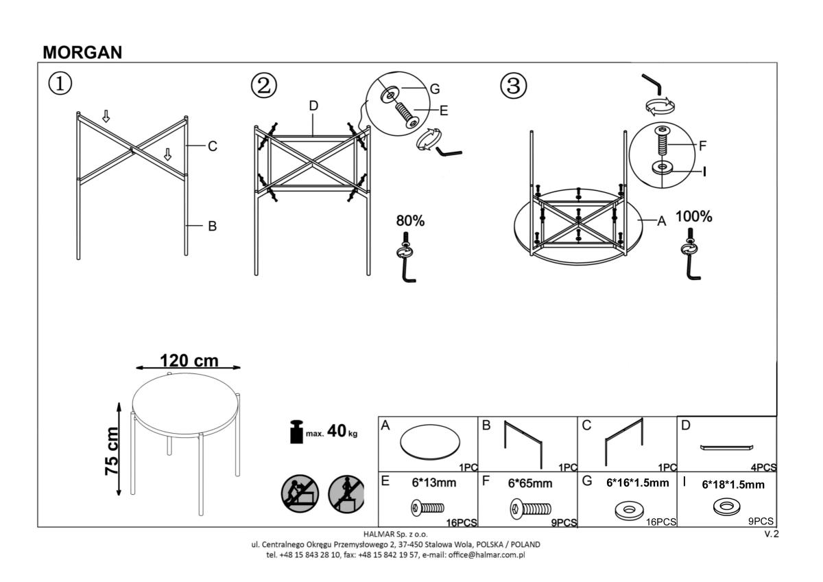 Metalowe nogi stołu są wykonane ze stali, dlatego jest stabilny i sprawdzi się podczas rodzinnych spotkań. Czarna rama malowana proszkowo jest precyzyjnie pokryta cienką warstwą farby, która posiada satynowe wykończenie.