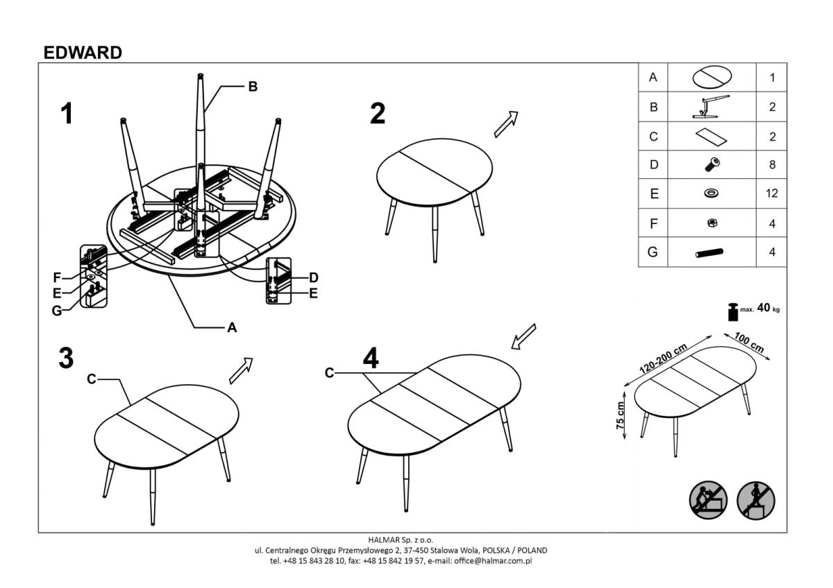 Blat rozkłada się z długości 140 cm do 220 cm, płyta MDF została pokryta eleganckim laminatem w kolorze dębowym. Struktura forniru imituje naturalne drewno a sęki na powierzani blatu dodatkowo potęgują naturalny efekt.