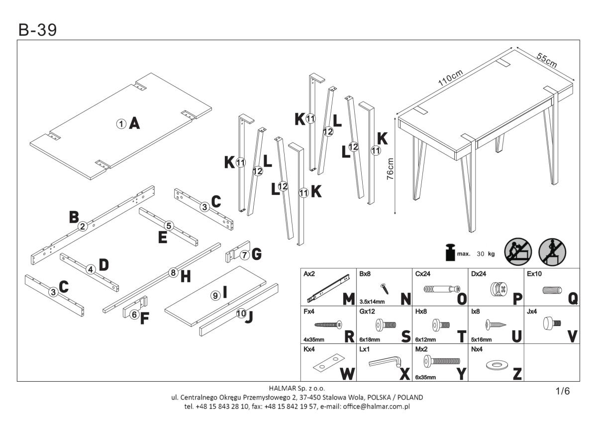 stabilna konstrukcja wytrzymuje obciążenie do 30 kg,