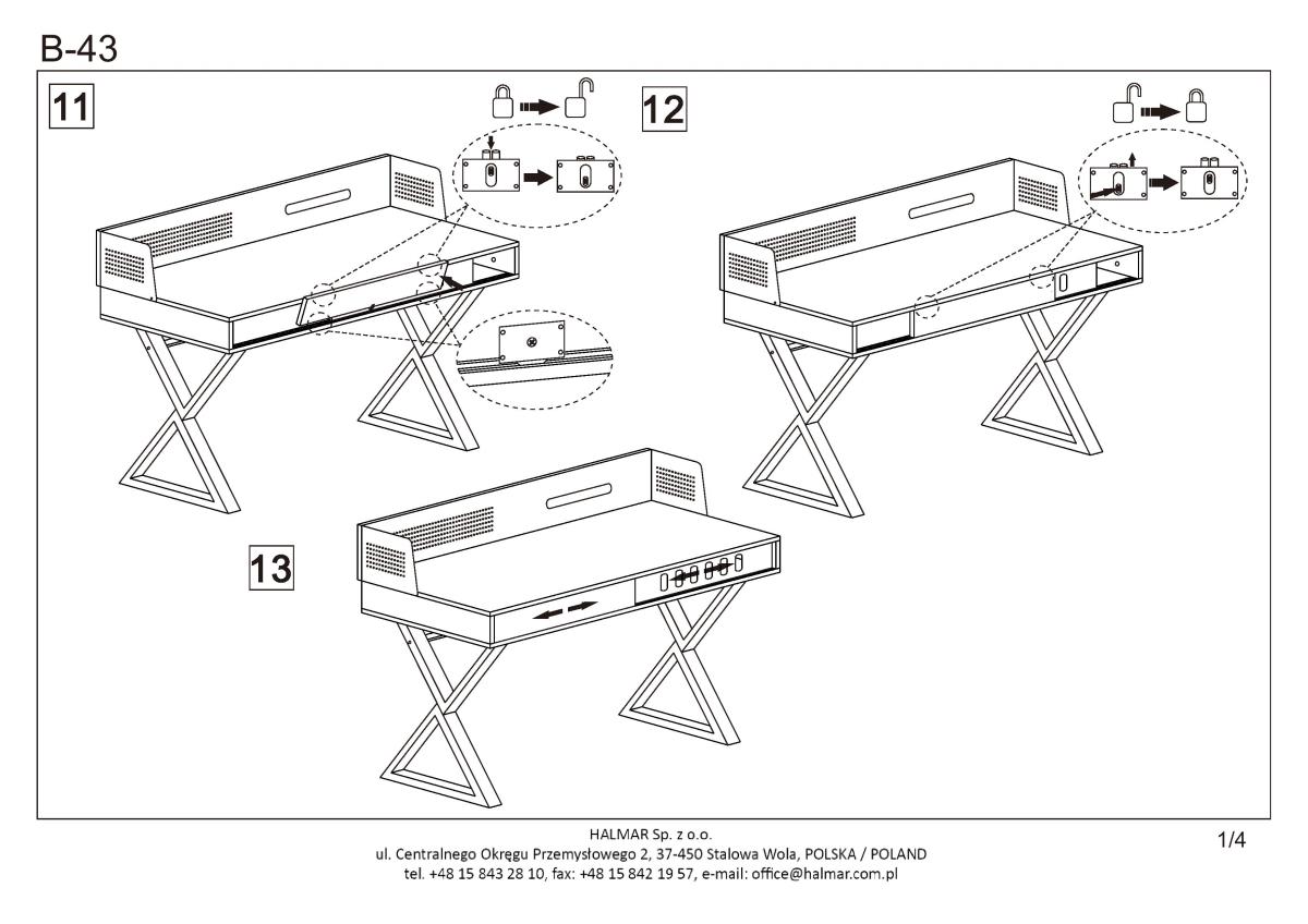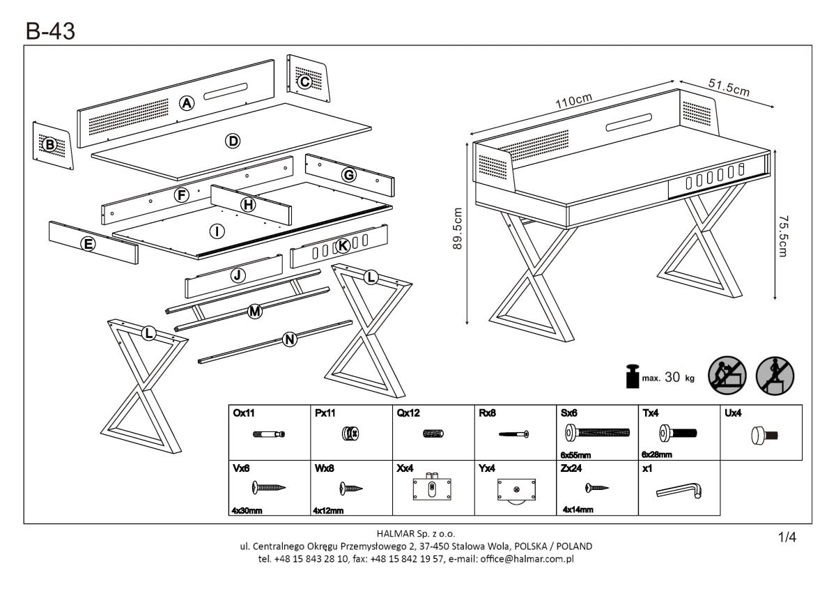 Efektowne industrialne biurko B43 z półkami pod blatem. Piękny blat w kolorze złotego dębu i nowoczesne metalowe detale tworzą niezwykle stylowy mebel biurowy. Biurko świetnie nadaje się do komputera, sprawdzi się w pokoju młodzieżowym, gabinecie i biurze. Wymiary biurka to: 110 x 51 x 90 cm, a wysokość blatu: 75,5 cm.