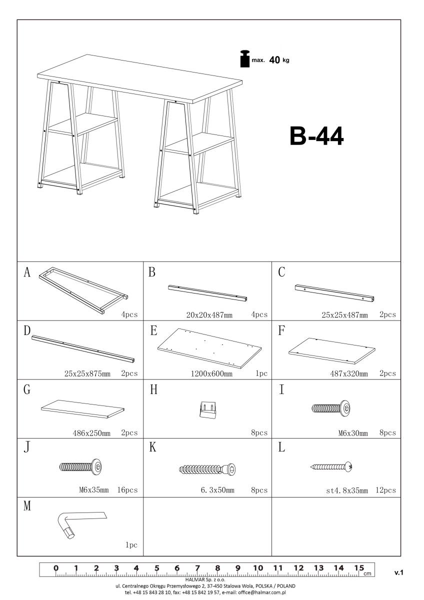 Funkcjonalne biurko B44 o wymiarach: 120 x 60 x 77 cm wyposażone w cztery półki. Idealne dla osób szukających dużego biurka, świetnie sprawdzi się w pokoju młodzieżowym, gabinecie lub w sypialni jako toaletka. Na półkach można postawić książki, zabawki lub akcesoria do komputera. Piękny mebel biurowy pasujący do wnętrz w stylu industrialnym, loftowym i klasycznym.