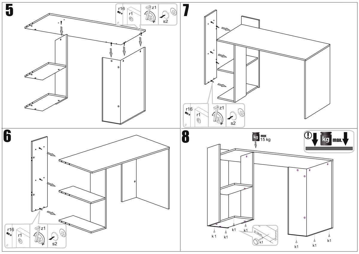 - półki sprytnie umieszczone w podstawie biurka, dzięki czemu najpotrzebniejsze rzeczy będą zawsze pod ręką