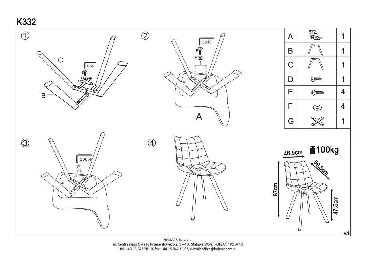 Krzesło do samodzielnego montażu- wystarczy przykręcić nogi do siedziska wg załączonej do przesyłki instrukcji.