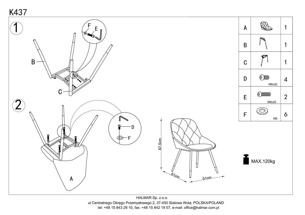 Piękne pikowane krzesło z poduszką w szarym kolorze K437 uzupełni wnętrze jako prawdziwy element luksusu i wygody. Pikowane oparcie nadaje mu wyjątkowego stylu, a miękki welur w szarym kolorze jest przyjemny w dotyku i łatwy w utrzymaniu czystości. Czarno-złote nogi to subtelny dodatek, który nadaje mu niepowtarzalny wygląd.