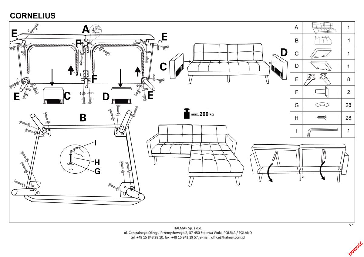 Funkcjonalność wersalki CORNELIUS sprawia, że jest ona czymś więcej niż zwykłym meblem. Dzięki dodatkowemu modułowi w postaci podnóżka możesz szybko i wygodnie przekształcić ją w narożnik. To rozwiązanie daje Ci możliwość dostosowania układu sofy do swoich potrzeb – połącz elementy w jeden większy narożnik, aby zyskać przestrzeń do wspólnego relaksu lub zostaw podnóżek osobno, tworząc dodatkowe miejsce do siedzenia. Trzyosobowe siedzisko zapewnia wystarczająco dużo miejsca dla całej rodziny, a opcja rozkładania zamienia sofę w wygodne łóżko, idealne dla gości lub codziennego użytku.