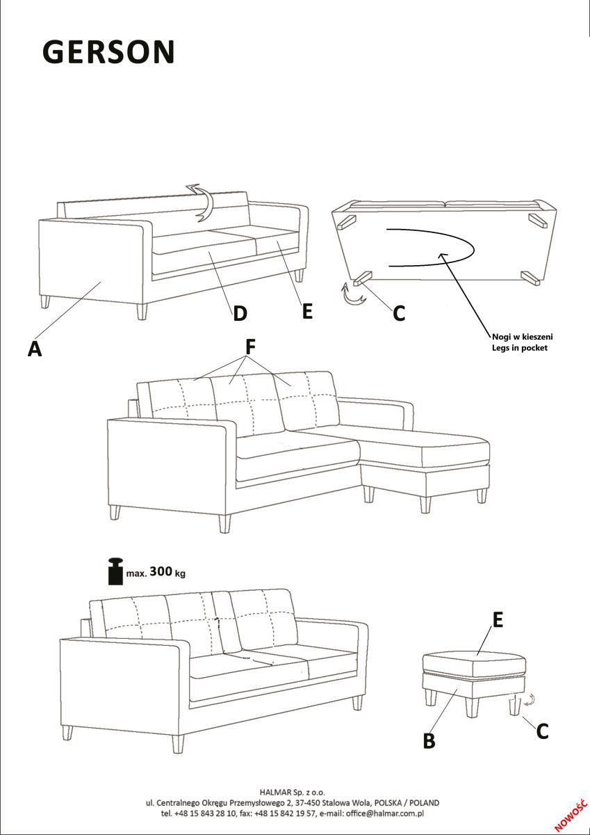 Kanapa wypoczynkowa Gerson z podnóżkiem to idealne rozwiązanie dla osób, które szukają harmonii między estetyką a wygodą. Dzięki niej stworzysz przytulny kącik wypoczynkowy, który stanie się ulubionym miejscem domowników i gości. Wybierz sofę Gerson, aby wprowadzić do swojego domu elegancję, funkcjonalność i niezrównany komfort!